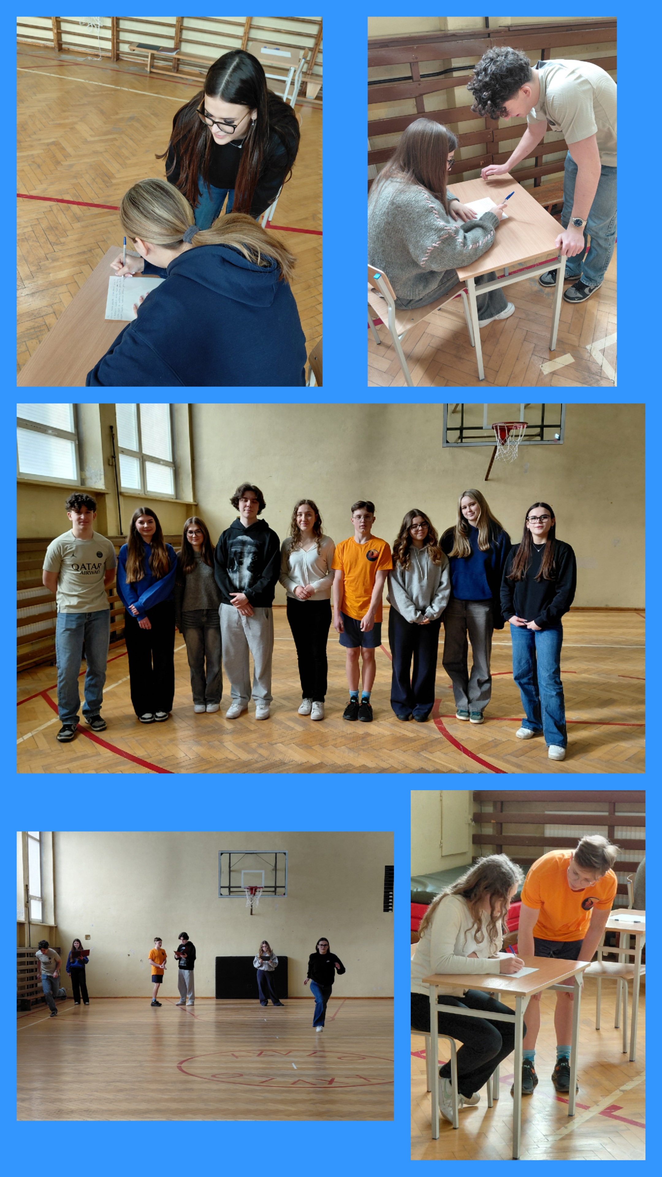 Z okazji Międzynarodowego Dnia Języka Ojczystego nauczyciele języka polskiego zorganizowali dla naszych uczniów „biegane dyktando”. Trzyosobowe zespoły klasowe zmierzyły się z niełatwym tekstem naszpikowanym wyrazami zawierającymi trudności ortograficzne. Było dużo śmiechu, zdrowej rywalizacji i oczywiście dbałości o piękną polszczyznę, a niektórzy przekonali się, że powiedzenie „kto nie ma w głowie, ten ma w nogach” jest wciąż aktualne. Gżegżółki i piegże z pewnością byłyby dumne z naszych uczniów!