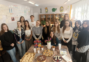 W dniu 14 marca świętowaliśmy w naszej szkole Dzień Liczby Pi oraz Międzynarodowy Dzień Matematyki. Klasa 3 A pod opieką pani Agnieszki Sobery przygotowała dla klas pierwszych szereg konkursów i quizów związanych z szlachetną liczbą π. W rywalizacji zwyciężyła klasa 1A. Na uczestników konkursu czekał słodki poczęstunek. Były ciasta, babeczki i bezy w kształcie litery π. Wszystko własnoręcznie wykonane przez uczniów. Było pysznie. Wszyscy bawili się wybornie.