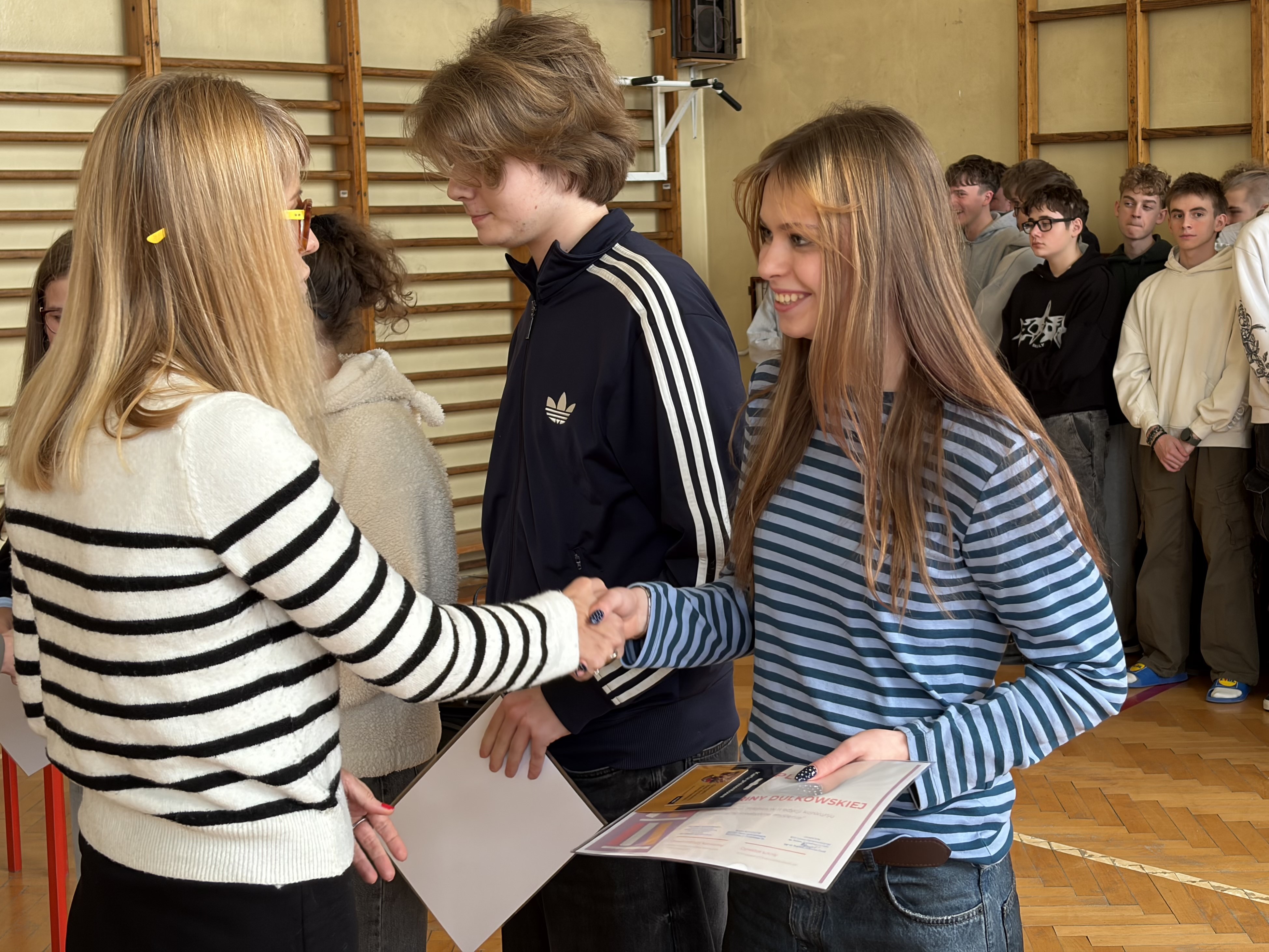 19 lutego odbyło się na sali gimnastycznej podsumowanie konkursów szkolnych i akcji wolontariackich zorganizowanych w I półroczu roku szkolnego 2025/2026. Dyplomy i nagrody otrzymali laureaci wymienionych poniżej konkursów oraz osoby zaangażowane w akcje charytatywne: