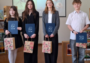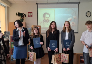 Jury, w skład którego, obok nauczycieli, weszły również uczennice naszej szkoły, laureatki wielu konkursów recytatorskich – Maja Sorbjan i Zosia Kawnik, wyłoniło zwycięzców. Nagrody wręczyła Pani Dorota Derecka.