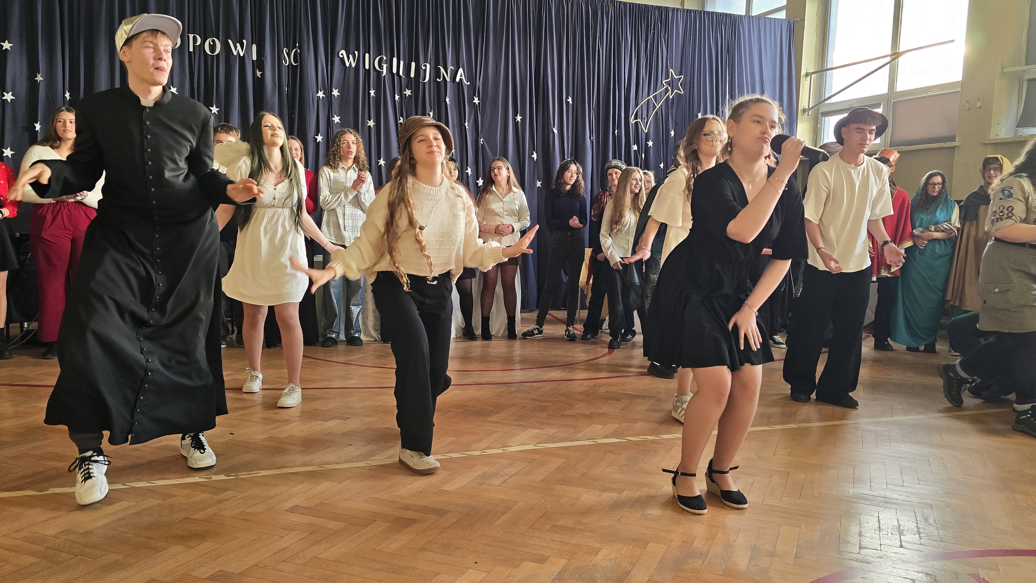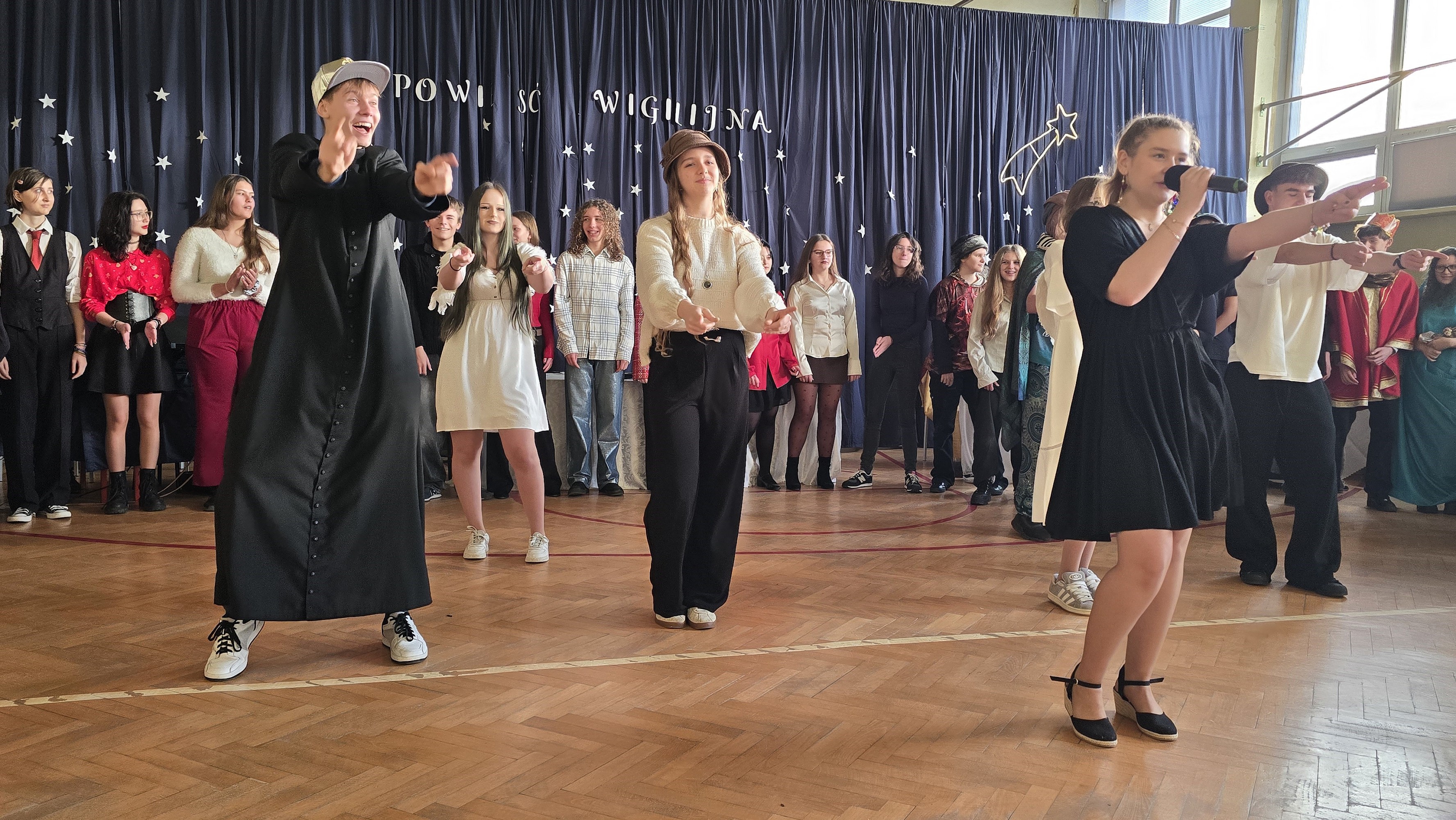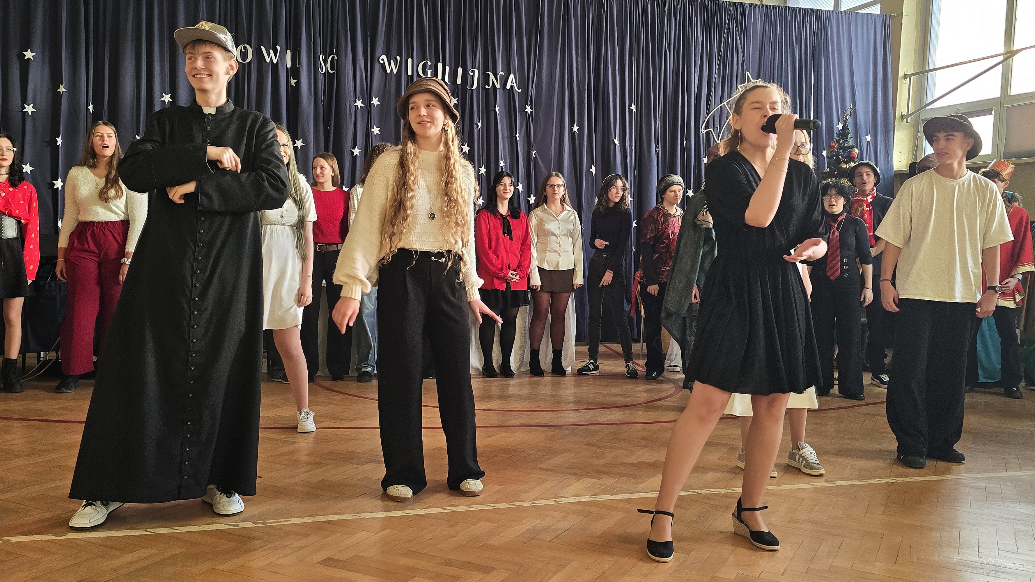 19 grudnia 2025 r. odbyła się w naszej szkole uroczystość wigilijna, która wprowadziła nas wszystkich w klimat Świąt Bożego Narodzenia. W jej przygotowaniu uczestniczyła młodzież z klas 1D, 2C, 3B, 3C i 3D, a nad całością czuwały panie Gabriela Rybarczyk – Jochym i Joanna Wiszniewska.